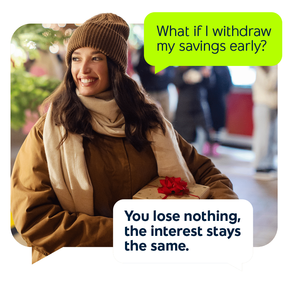 We know plans can change quickly. If you need your money before the term ends, you can withdraw it at the same interest rate 4.50% (NIR=EIR).